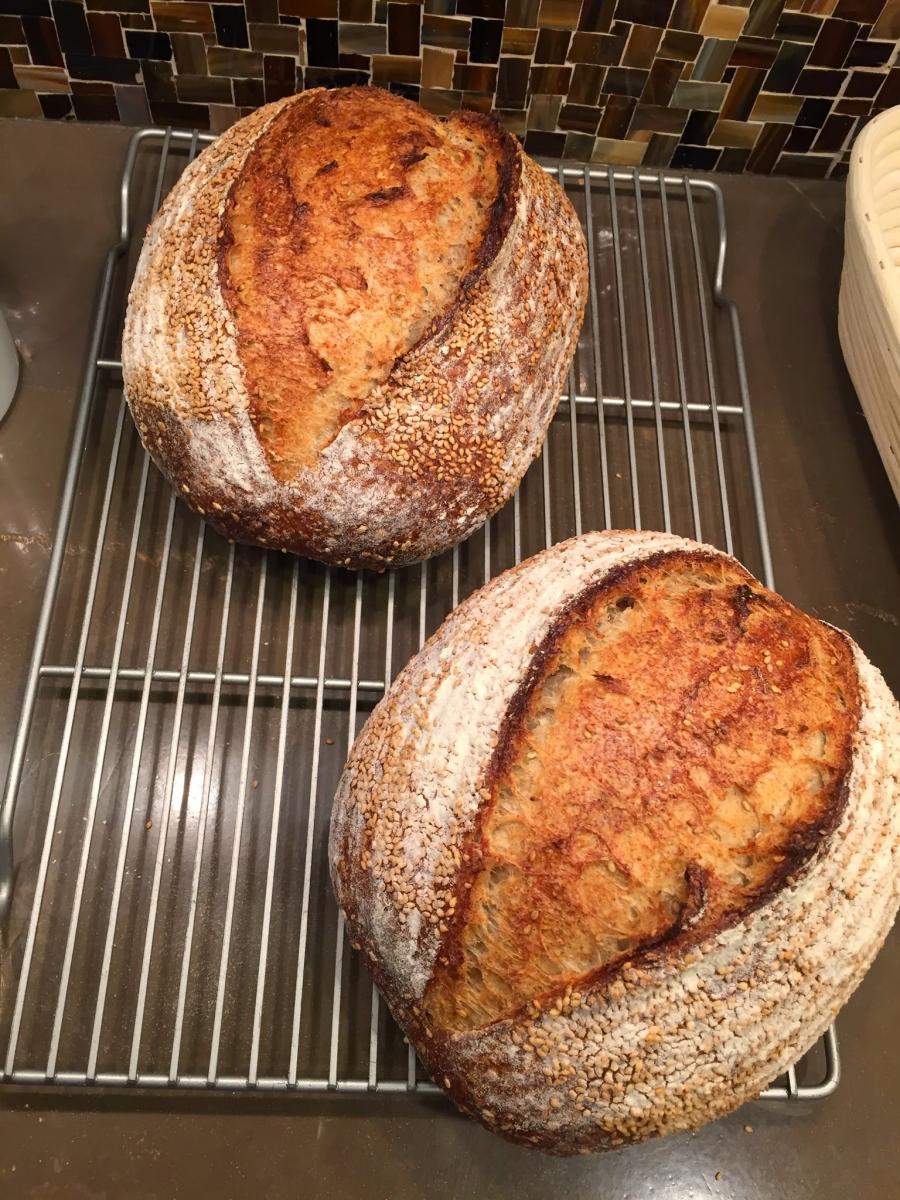 I usually score Forkish breads too, yours look fantastic. I must try the sesame seeds. Can I ask where you got your oval bannetons?