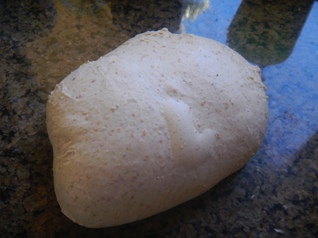 After dinner, once the levain warmed up on the heating pad during the autolyse, we added the levain to the mix. We did 8 minutes of slap and folds and then 2 more sets at 12 slaps and folds each before 3 sets of stretch and folds from the compass points were done. All of the gluten development was done on 20 minute intervals and finished in 2 ¼ hours