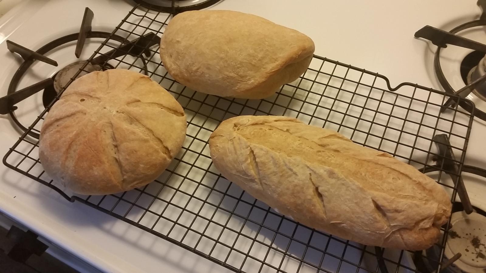 His recipe produces 3 breads/boules/loafs. After splitting the dough in 3 equal parts (using scales), my end result was 3 rather small breads. I'm sure someone here baked these breads before, are end results suppose to be this small? Now, I know I probably overproofed a bit (and lost some oven spring) - it's much hotter in house (it was probably around 75 in the kitchen when I started and probably close to 80 by the time bread went into the over), and as I originally planned on the timeline provided in the book, I just couldn't get oven hot enough in time. Still, the finished breads appear to be too small to me (maybe next time I'll just do two or even one boule instead).