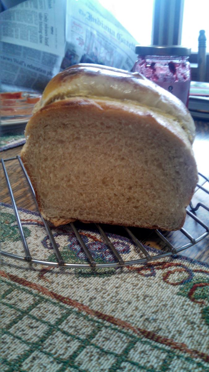 My family is originally Pennyslvania Dutch, and my dad loves the shiny-topped, sweet, and fluffy "Amish" white breads, so it was a huge compliment when he compared my bread to an Amish loaf. He has decided to call it Kamikaze bread, partially because he forgot the name, and partially because he thinks he's funny.