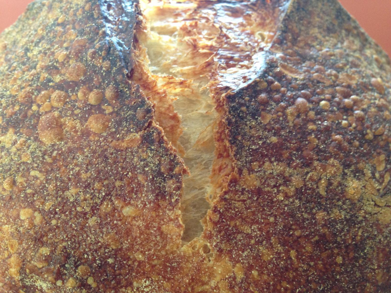 Ooh, that's a beauty V's sis!  Love that russet color and those blisters.  And the crumb with its upward motion frozen in time, so that it is forever striving higher but never quite reaching its zenith.  It doesn't get much better than that.