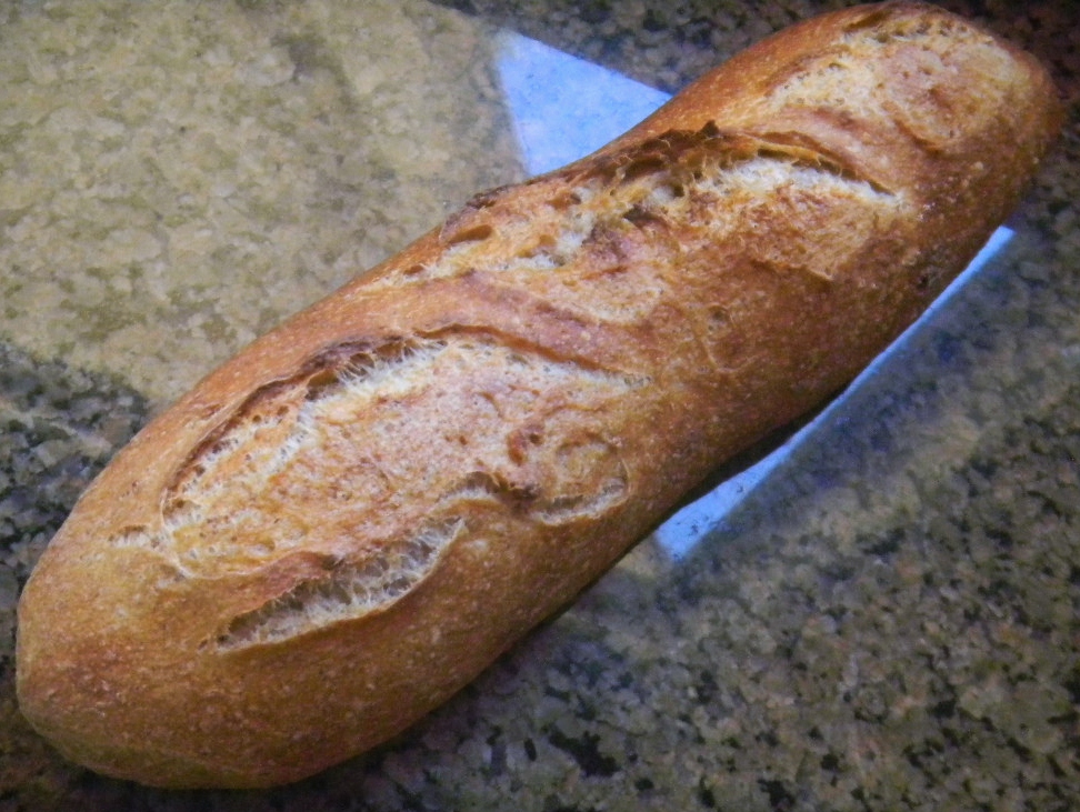 True to her word, Lucy took last week’s baguette bake and tried to improve it seve4ral ways.  She cut the cold time in the fridge from 19 hours to 13 hoping to the keep the dough from over proofing to get better spring, bloom and maybe ears.