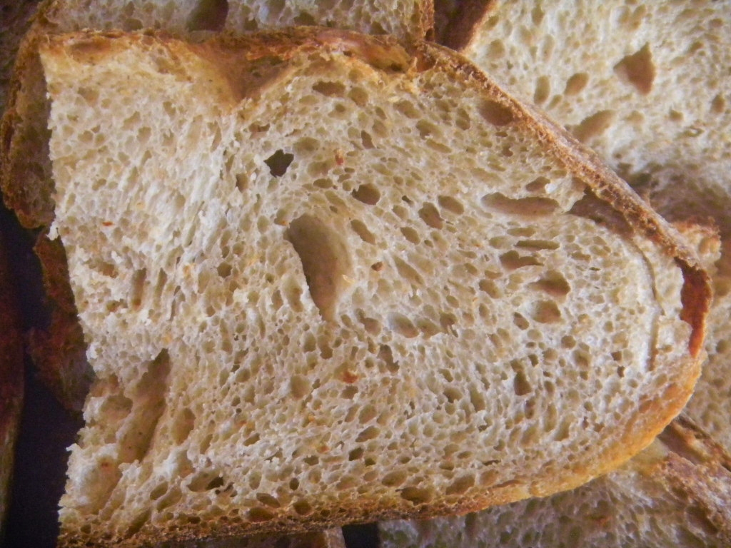 Here is crumb of the baguette.  For the rest of the methods of levain build, autolyse and dough development, see last weeks post here