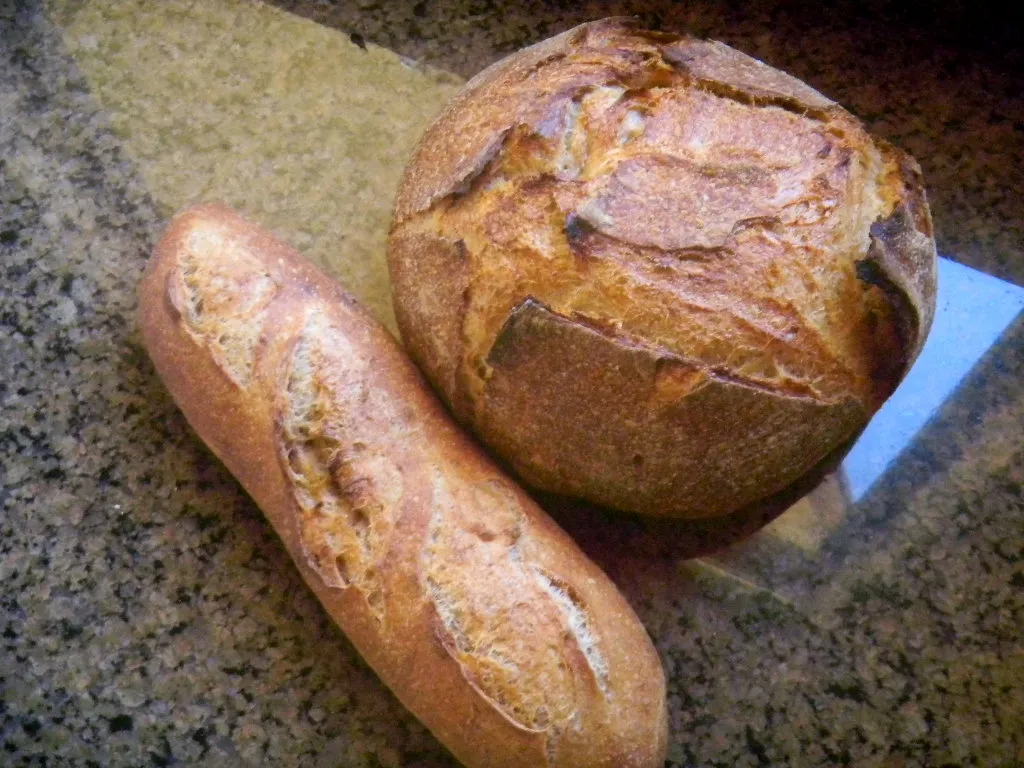Sure knows how to tweak things!  Beautiful breads, I love the crust close up on that boule with the color variations and the crispy blisters.