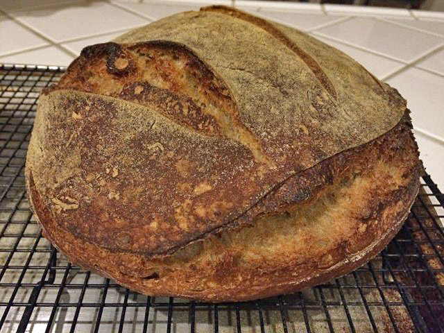I also baked another couple loaves "in the spirit of FWSY" - loosely based on Forkish's "Pain de Campagne." I fed an activated liquid starter per Forkish one afternoon, let it ferment at room temperature and then refrigerated it overnight. The next day, I let the starter warm up for a couple hours, I mixed the dough, bulk fermented to 2.5X the original volume, divided, shaped and cold retarded over another night. Then, baked the following late afternoon. The flour mix of the final dough was 500g AP, 200g WW and 100g Medium Rye.