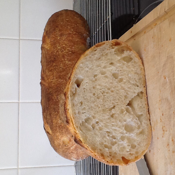 Came across this recipe by Teresa Greenway.  although it is a white loaf it was delicious.  Double hydration worked easily and dough was fairly firm and easy to shape at 68% hydration.  Overnight retard as per recipe, only needed hour and half to proof then baked. Have no DO so steamed up oven well and happy with the result.  Will make this again for sure - just wanted to keep on eating it!