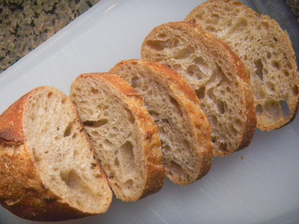 What a great crust!  Since we gave away last week's bake we have been eating unfrozen baguettes for breakfast and lunchl - P&J's for breakfast and BLT's for lunch.
