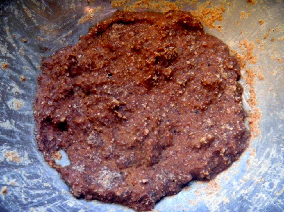 On Wednesday dried the sprouted grain in the dehydrator at 105 F for 3 hours and ground them in the Nutrimill getting a 35% extraction with our one and only sieve.  On Thursday, we took the 35% of the hard bits and used that to feed a bit of our 8 week old retarded rye sour starter to make the levain over 3 builds and then refrigerated it for 24 hours.