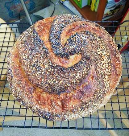 Hannah: You have done it again. I love that swirl pattern. I will have to try it on my next boule. All of your scoring and crumb are outstanding. There is no way that you have been baking for only a year...not possible! You should see my first year bakes. Yours are highly professional! Thanks for sharing the formula, I will have to try it. Congratulations on these bakes. Very impressive and please keep them coming. Best, Phyllis