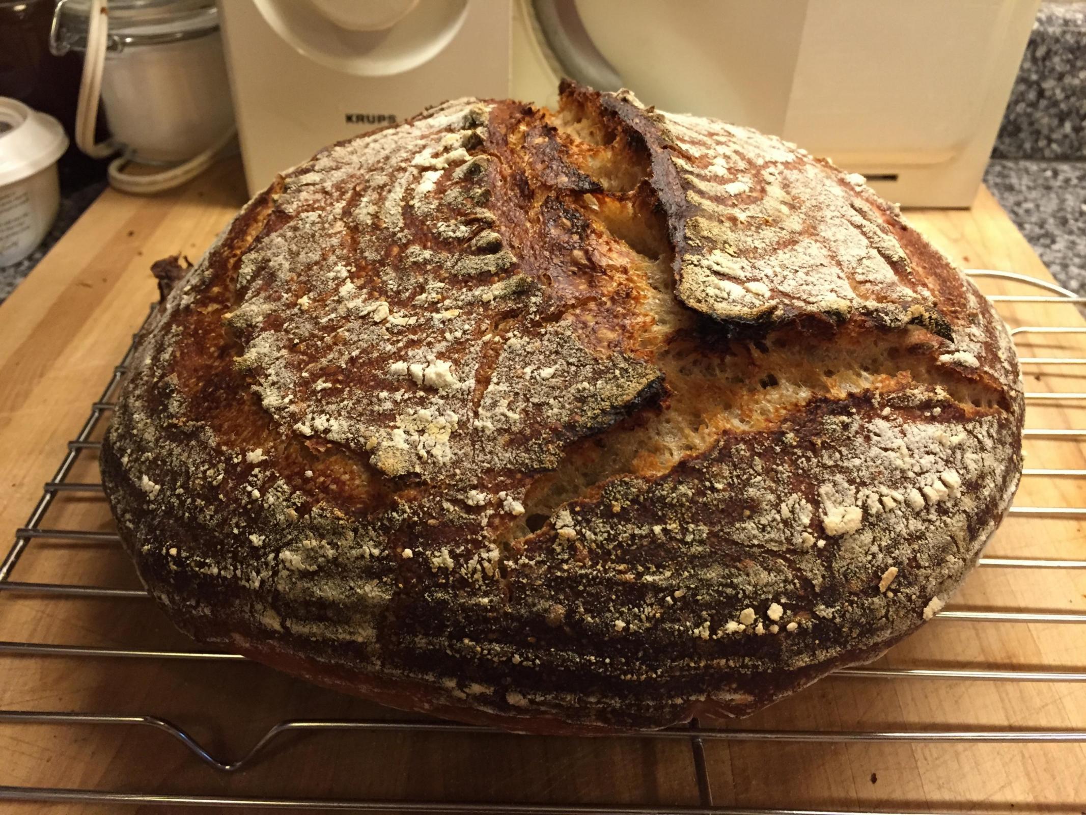 My flour was 750 grams divided as 500 grams of KA bread flour, 150 grams of Hodgsons Rye and 100 grams of KA White Whole Wheat.