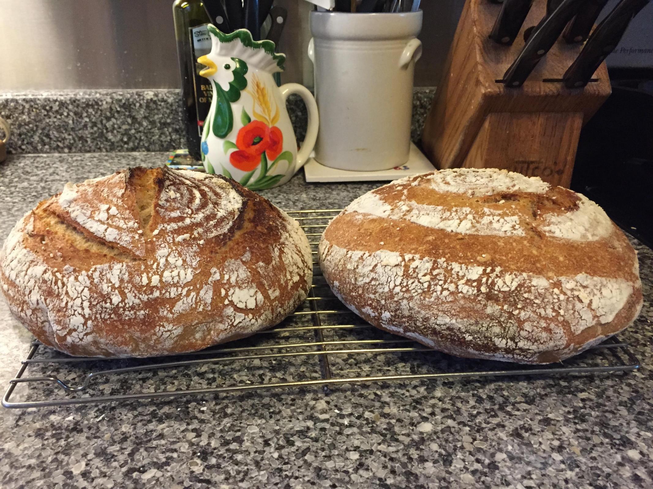These just came out of the oven...left scored correctly, right only has the swirl but not deep in the cut...which was baked in oval DO bake.