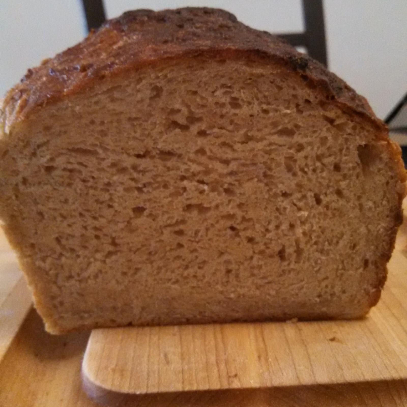 This is the most consistent loaf of bread that I make. In a perfect world, this is breakfast every day. I used 2/3 bread flour and 1/3 whole wheat flour, and it's so soft.