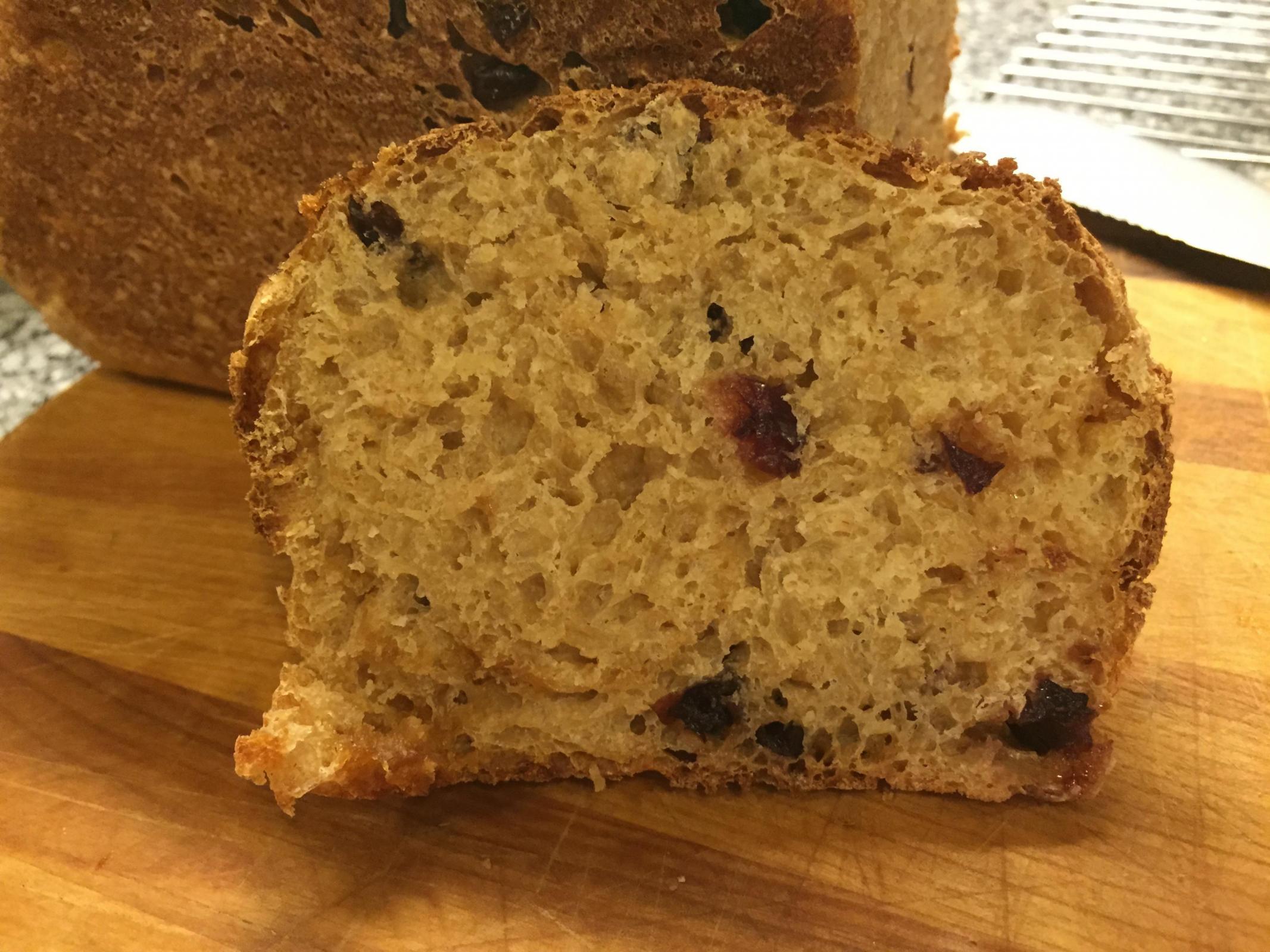 And while not as pretty as other loaves I've taken from the oven, these really are tasty. A hint of sour from the levain and buttermilk, a little sweetness from the honey and brown sugar and tartness from the cranberries.