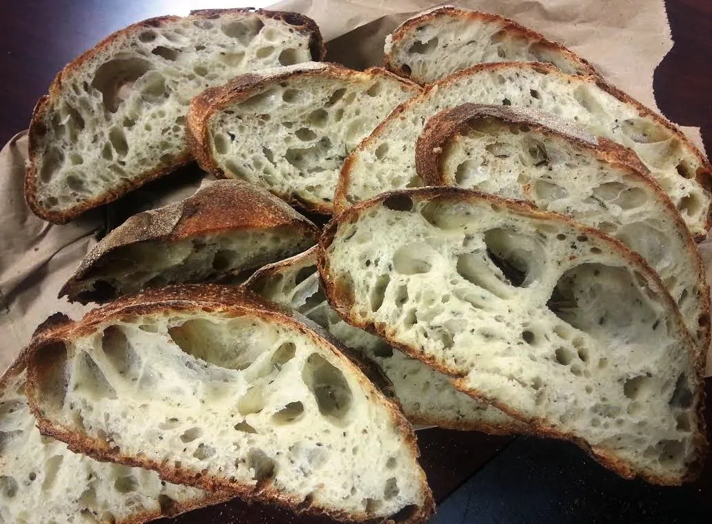 Hello, Fresh Loafers! I haven't posted a formula in awhile, and I think that this one for 76% hydration batards with rosemary and cream cheese is nice and reliable.