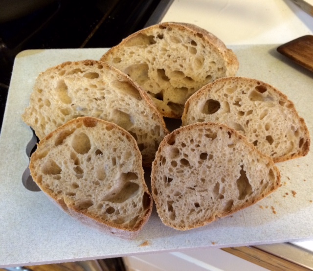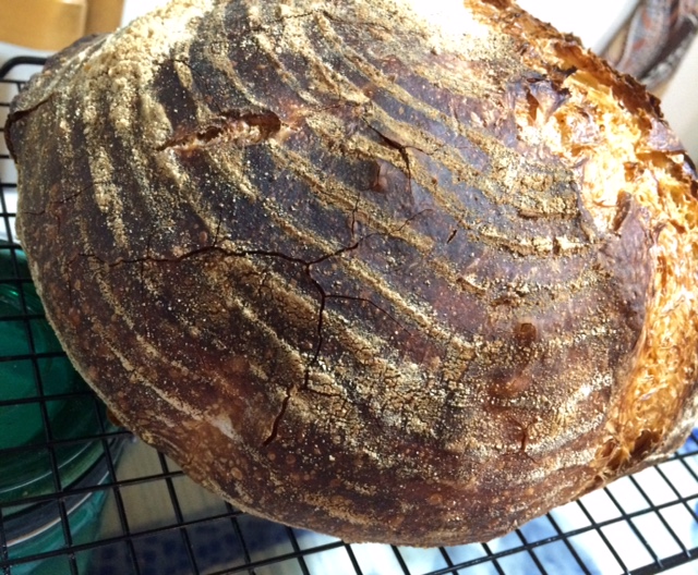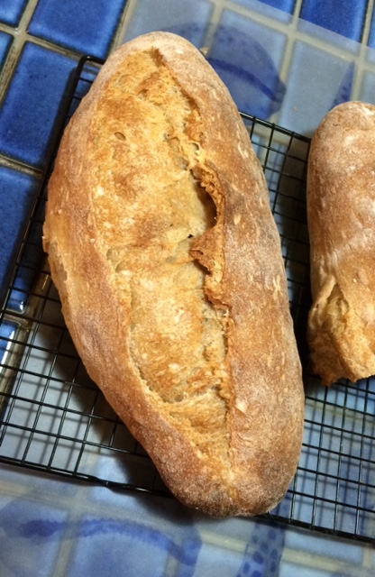 Look familiar? It's your SJSD batards. They are already gone - so delicious! I'm still working on my batard shaping and transferring from couch to oven is a crazy adventure...but I was pleased with the way this one came out. (The other one - not so much. It slipped a little while transferring and glommed onto the other loaf - oh well, still tasted amazing)