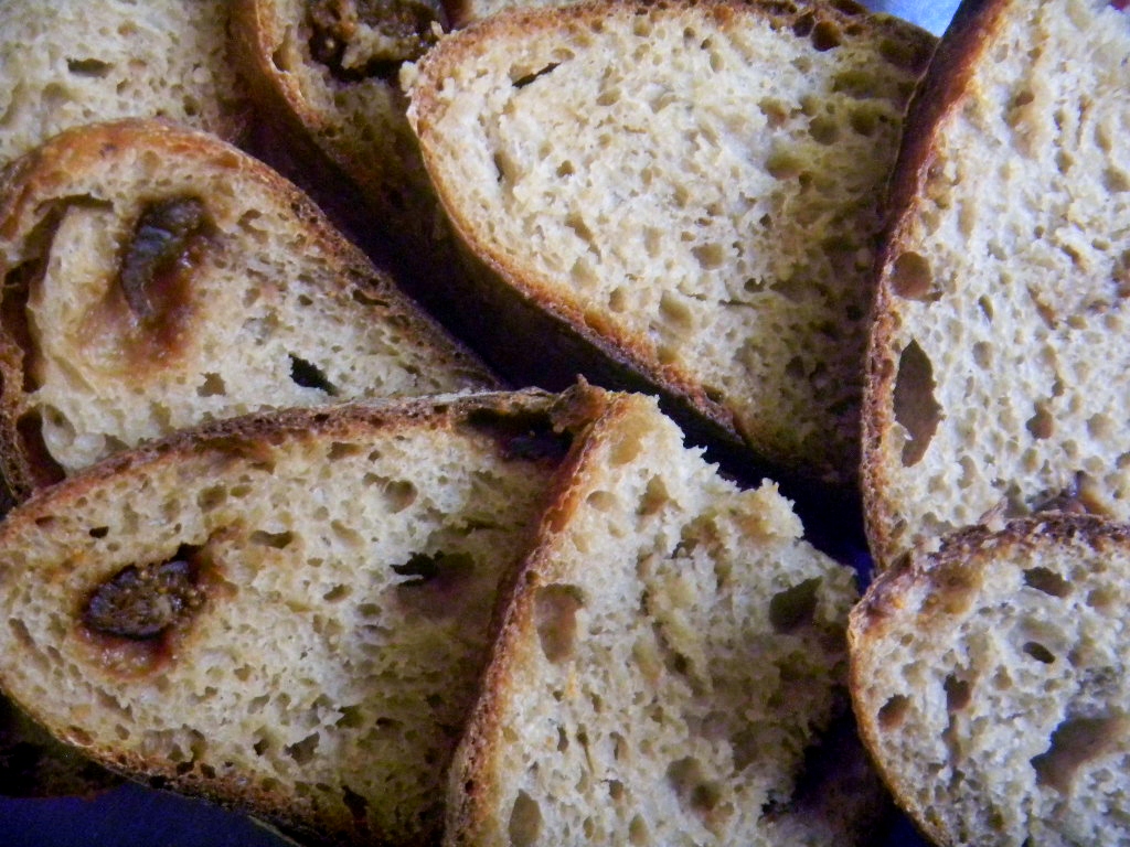 The crumb out fairly open for a bread of this type and add ins. It was glossy soft and moist too. Slightly sweet due to the fig and fig juice. The anise came through in taste as well as aroma. A delightful bread all the way around that made a fantastic grill 3 cheese sandwich for lunch. Will be dipping this in Italian oil vinegar herbs cheese and cracked blck pepper for an appetizer for tonight's dinner.