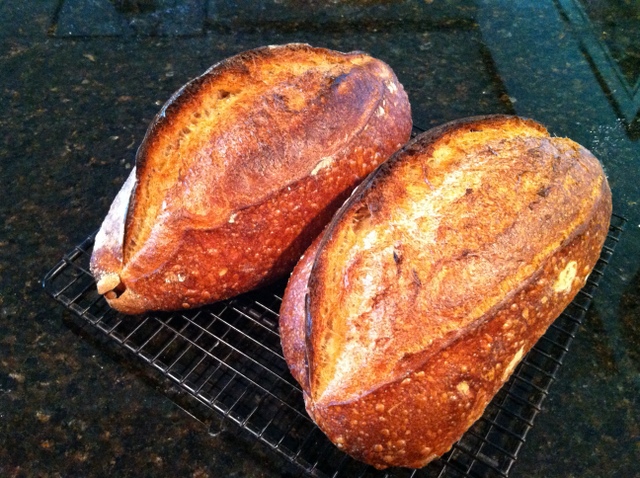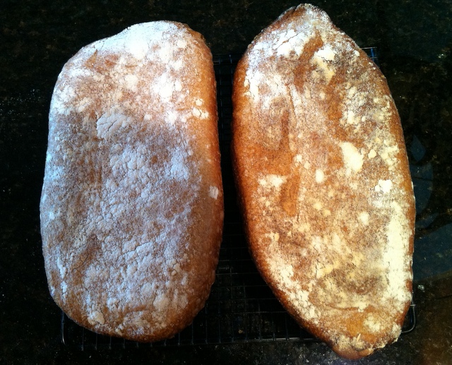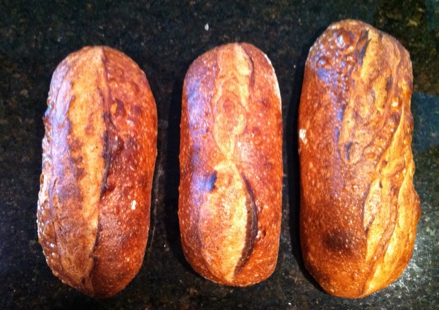 Not quite the same as a comb-over.  Back from my northern voyage where I was able to handily empty out the freezer from the warehoused batards for the in-laws, I had a hankering' to make a batch of Ken's Bakery's Country Blonde batards.  (vs. the FWSY version)