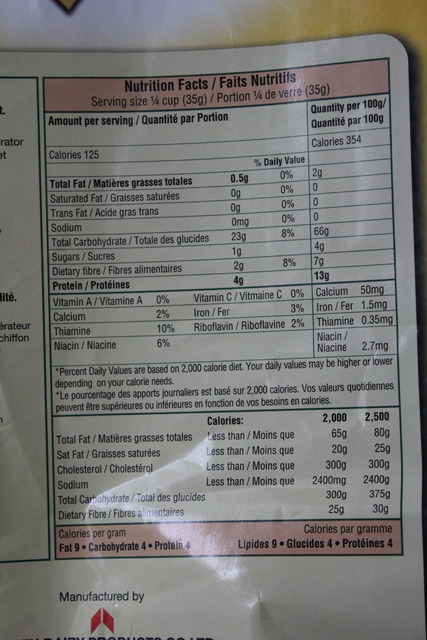 The label says that it consists of 100% durum wheat. The nutritional information panel on the back of the bag lists the fiber content as 7g of a 100g sample, or 7%. I infer that to mean that this is a whole or nearly whole wheat flour. The items listed on the panel only total 92g, instead of 100g, so I'm not sure what else is there that didn't fit into the list of nutrients. Non-dietary fiber, perhaps?: