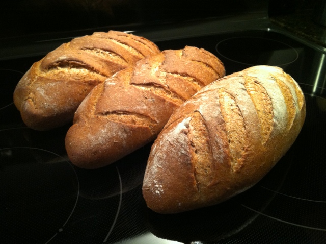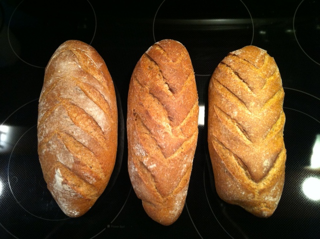 - adjusted for 1500g, three batards at 500g each.