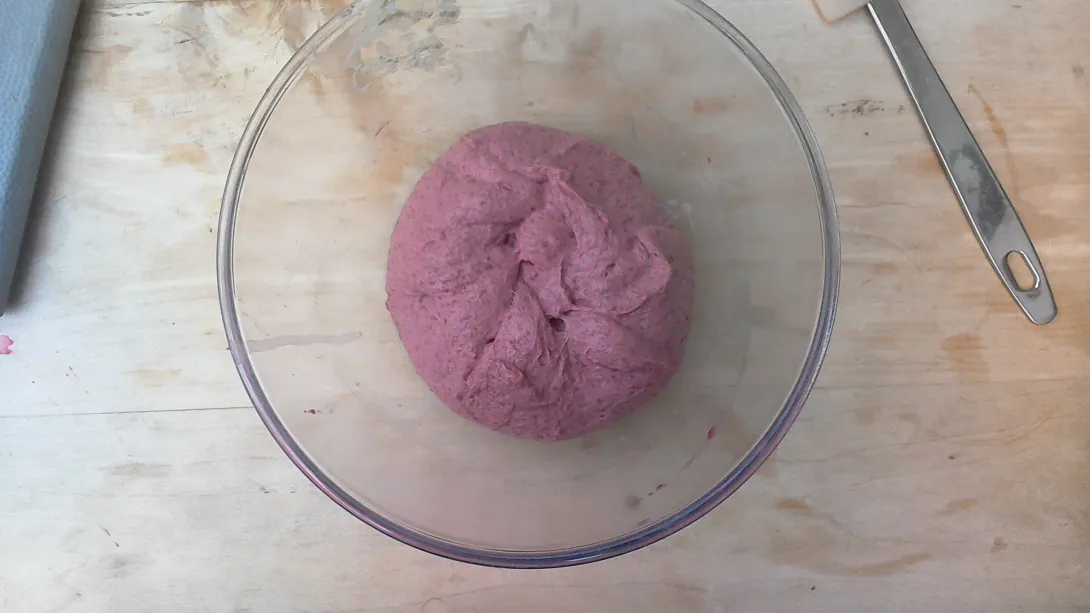 In real need of some unusual bread I have determined the following proportions for 4lb of wholemeal beetroot bread dough of good consistency.