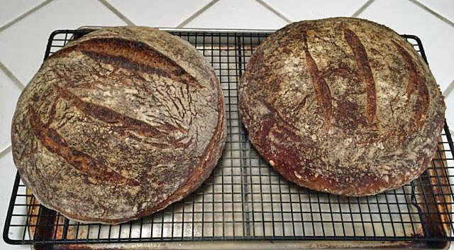 Well, each boule weighed over a kg. All but one half-loaf got frozen. It probably won't last 3 days. I had some untoasted for breakfast with butter. It was really good. The Flaxseed flavor was much more pronounced than it had been yesterday.