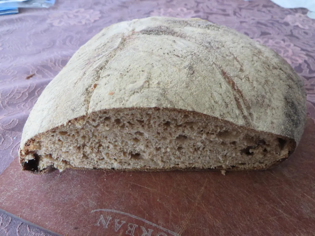 Edible Schoolyard is a project of Alice Waters to encourage schoolkids to eat healthy and have fun with food. It started at a school in Berkeley but has spread to a number of locations. Acme is a big supporter and I don't know whether there's an extra contribution to the program when you buy this bread. The triangular shape of the loaf is because it's supposed to look like a school bell.