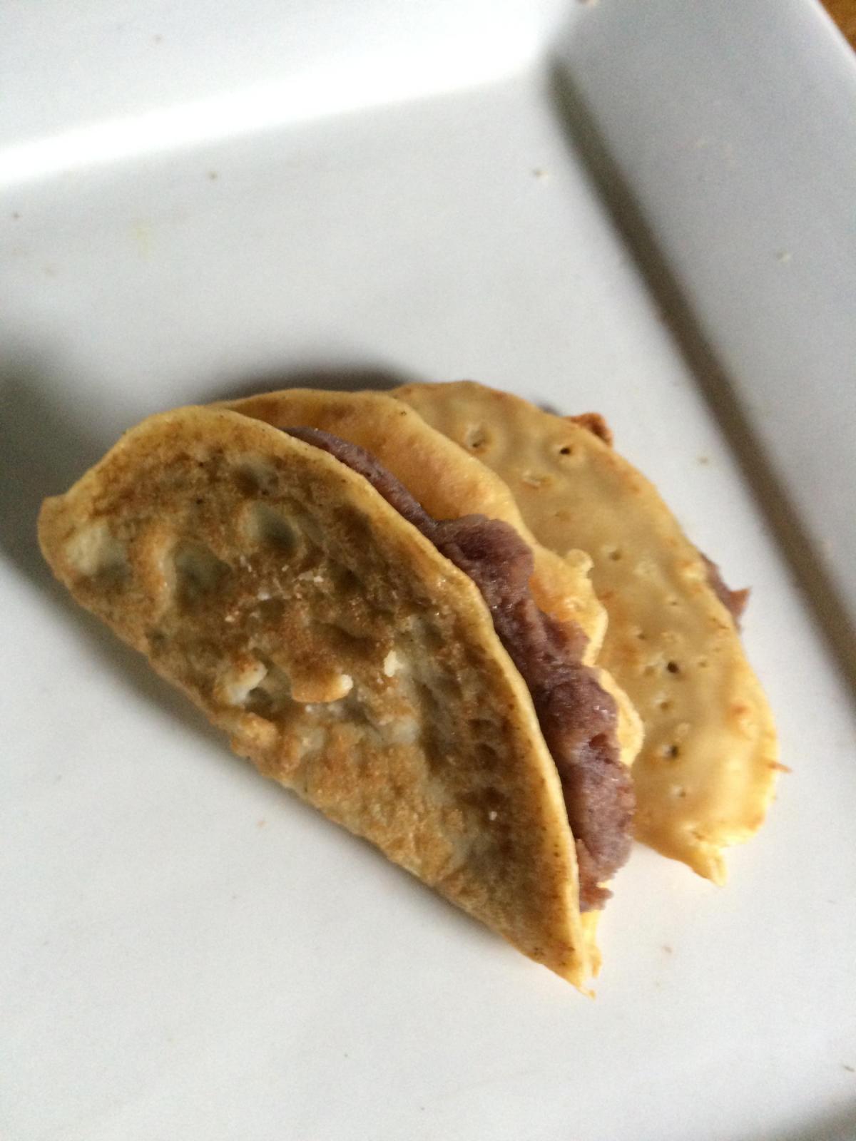 I made this little crepes yesterday and filled them with the bean paste. I thought of making dorayaki but I settled on this crepes for something different. Too bad, they're almost gone when I snapped a photo.