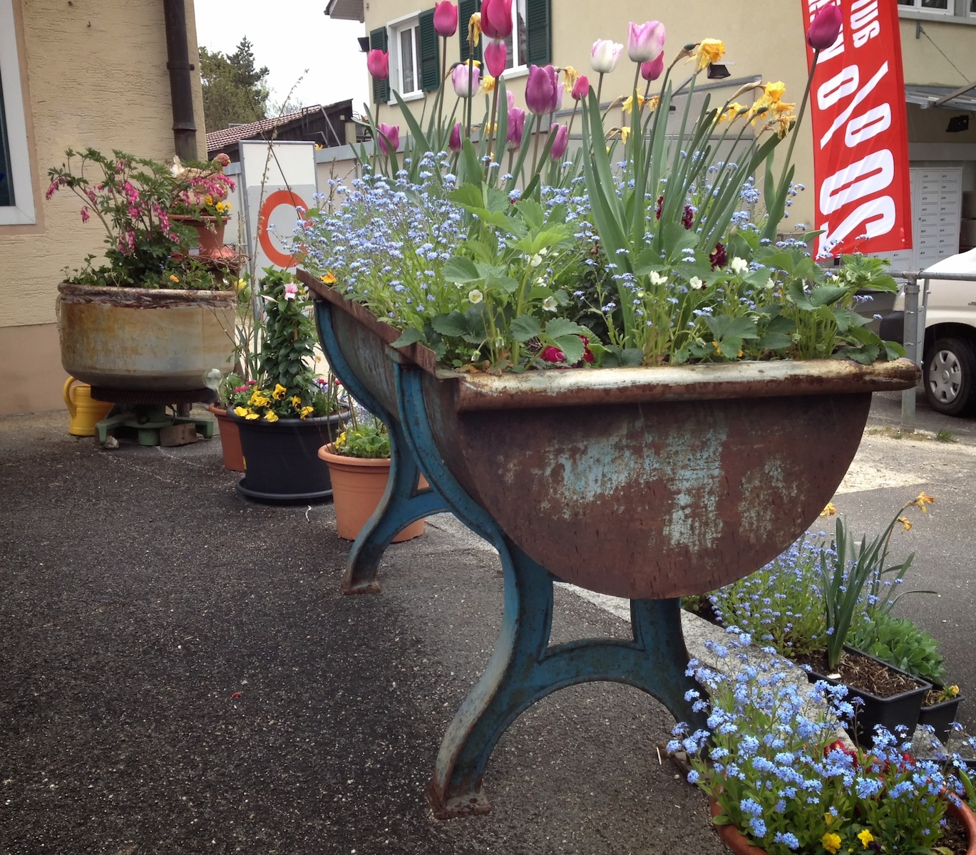 I hope that you have room to hang on to this, it deserves more than to have geraniums growing in it.