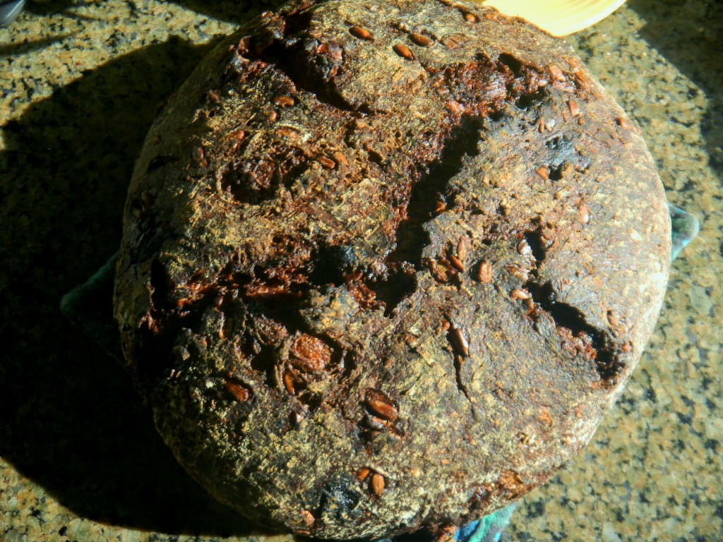 She also likes the baked scald in the Westphalian rye and used that to replace the home made caramel in the Old School Pumpernickel thinking the baked scald made for way more flavor. For this baked scald she used some sprouted whole wheat and sprouted whole rye with some dehydrated minced onions, molasses, barley malt syrup, red malt and water baking it in the mini over for 3 hours at 150 F with the door ajar so the enzymes wouldn’t be killed off. When finished,remember to top the water of the scald back up to its original amount before mixing it into half the levain. Otherwise the dough will be too dry.