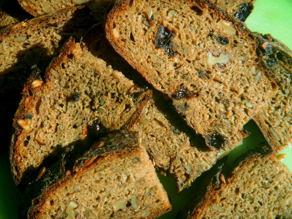 but it isn't Westphalian Pumpernickel. According to German bread standards, the official version is made with coarse rye meal, water and salt only -- no leavening, no colorants, no beer, nuts or fruits and no added sweeteners. -- and must bake for a minimum of 16 hours. Don't mean to be pissy, but calling that beauty WP is not unlike describing Donald Trump as a progressive.