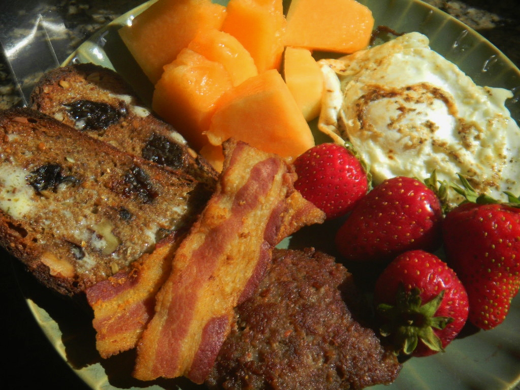 Dark, rustic, aromatic, seedy with bits of fruit. I agree, a bit of toasting and butter is all that's needed to yield a wonderful breakfast. Taken a couple steps higher, as you did, breakfast is made memorable and surely gets the day off to a great start.