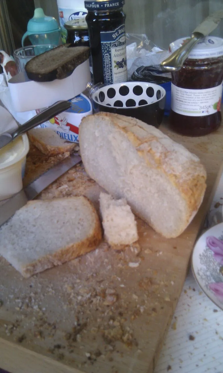 Amazingly, although the crust was too thin and soft, the bread was tight, tasty and light and I loved it with all my heart because it was mine. And we finished it in a single afternoon tea/coffee sitting.