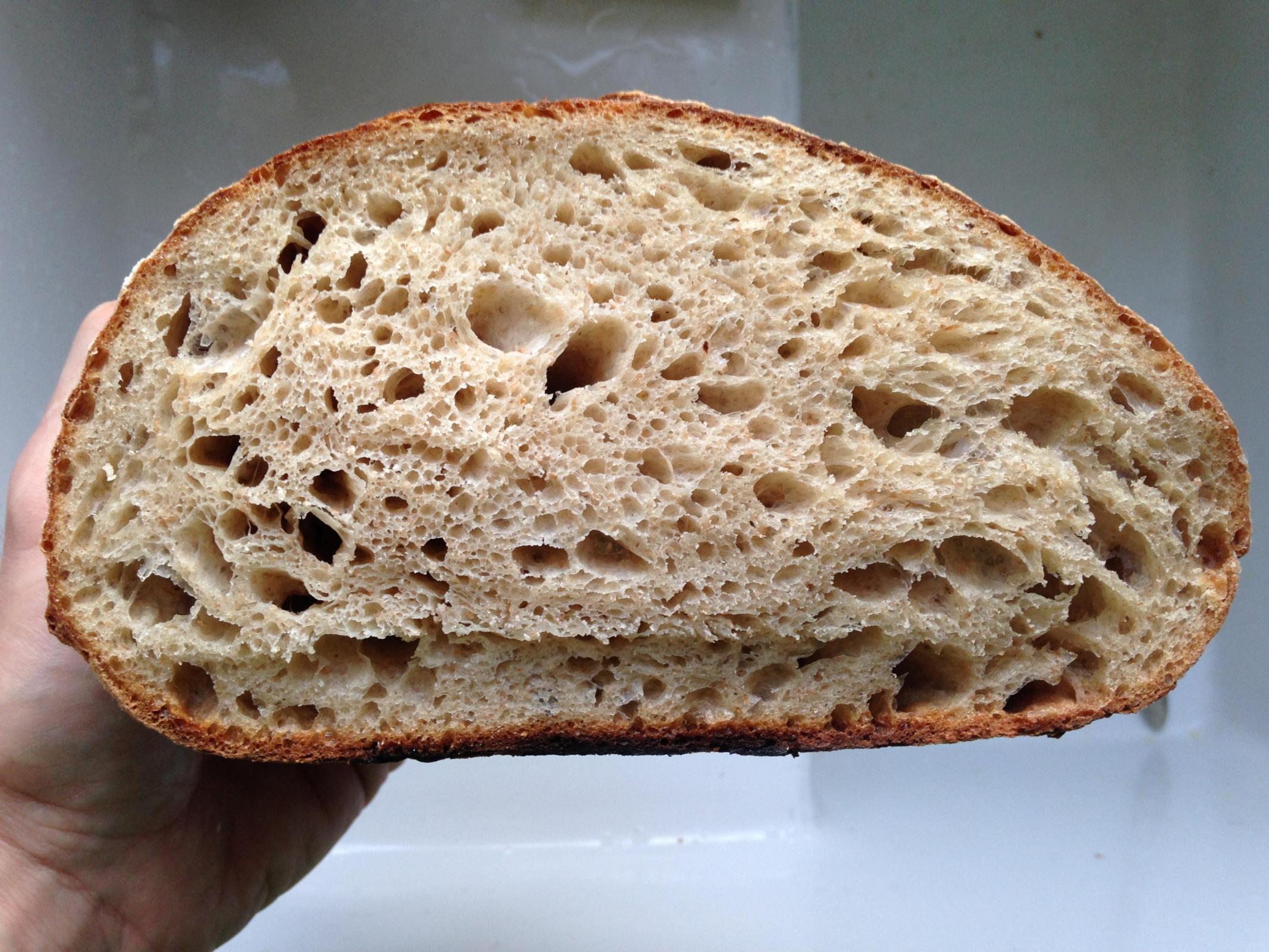 thank you both. i have the feeling it might mainly be proving time. see crumb shot attached, which i thought was quite good (the crumb, not the shot). the breads have about 3 hours from salted to final shape (in bannetons) and then about 19h (this time, usually a few hours less) in the fridge at about 3C-4C deg. i then give them about 45-60min proving before baking. i measured the dough temp when out pf fridge was 5C and about 5.6C when i loaded them in oven.
