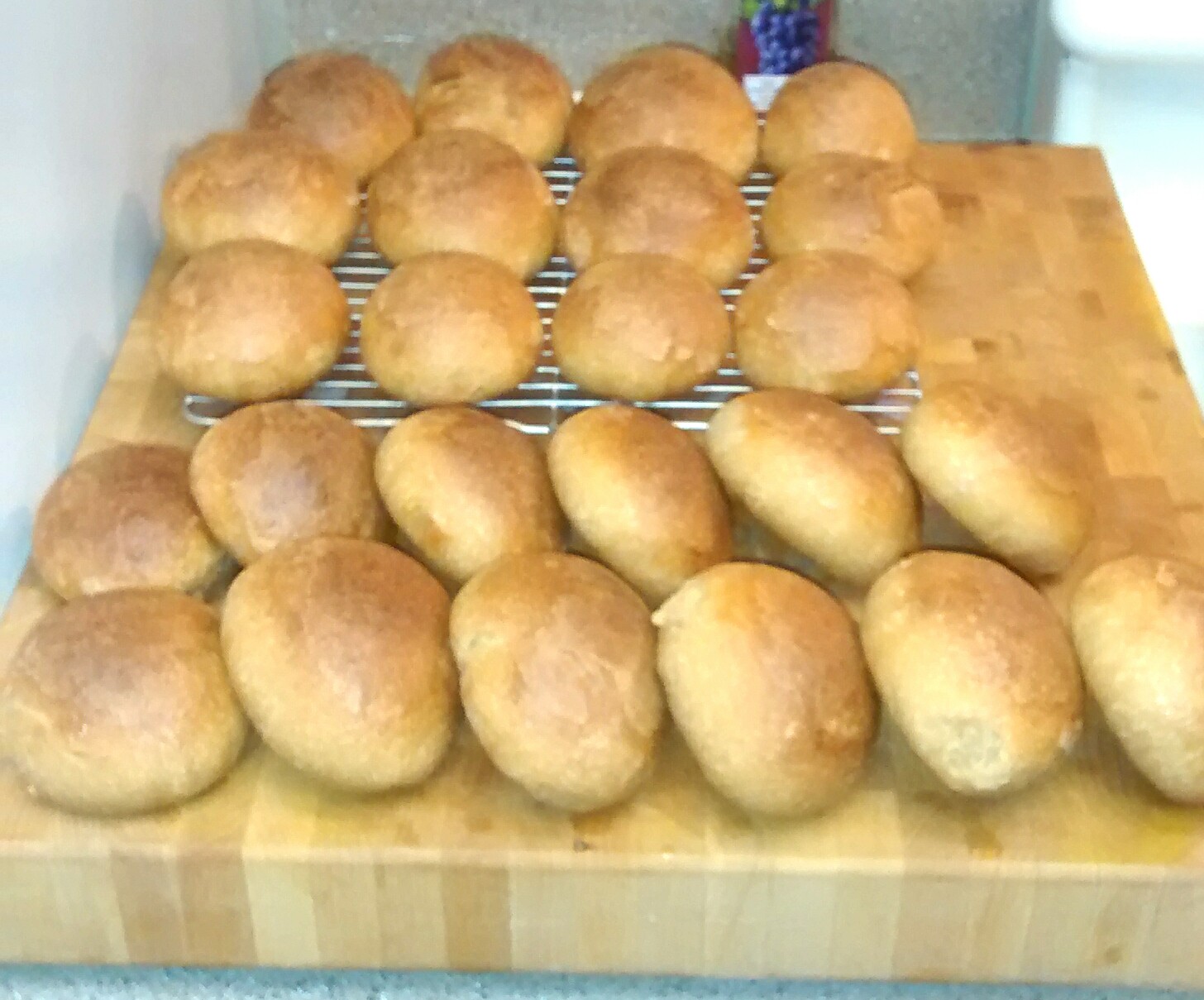 Finally, I made the whole wheat sandwich bread from Reinhart's Bread Revolution.  I made a few substitutions: soy milk instead of cow's, maple syrup instead of granulated sugar, sourdough instead of instant yeast. While I didn't like the dense texture, they tasted nice.