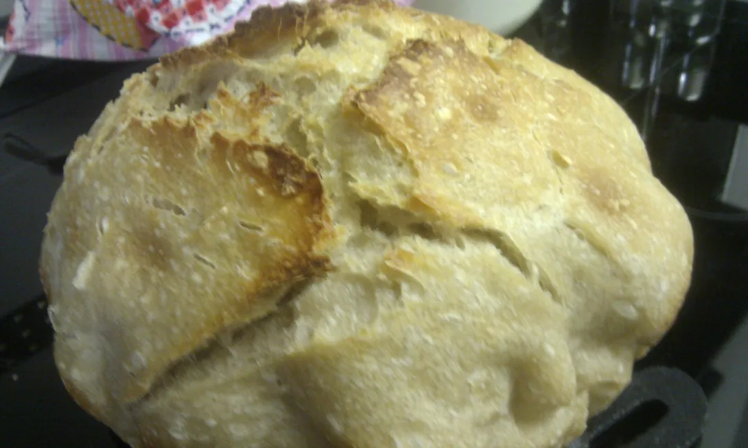 It's lumpy because it was so wet I didn't find a way to shape it without re-kneading it and decided to just move it to the DO in a parchment and let it rise about 50% there (the parchment folds gave it the bulby form).