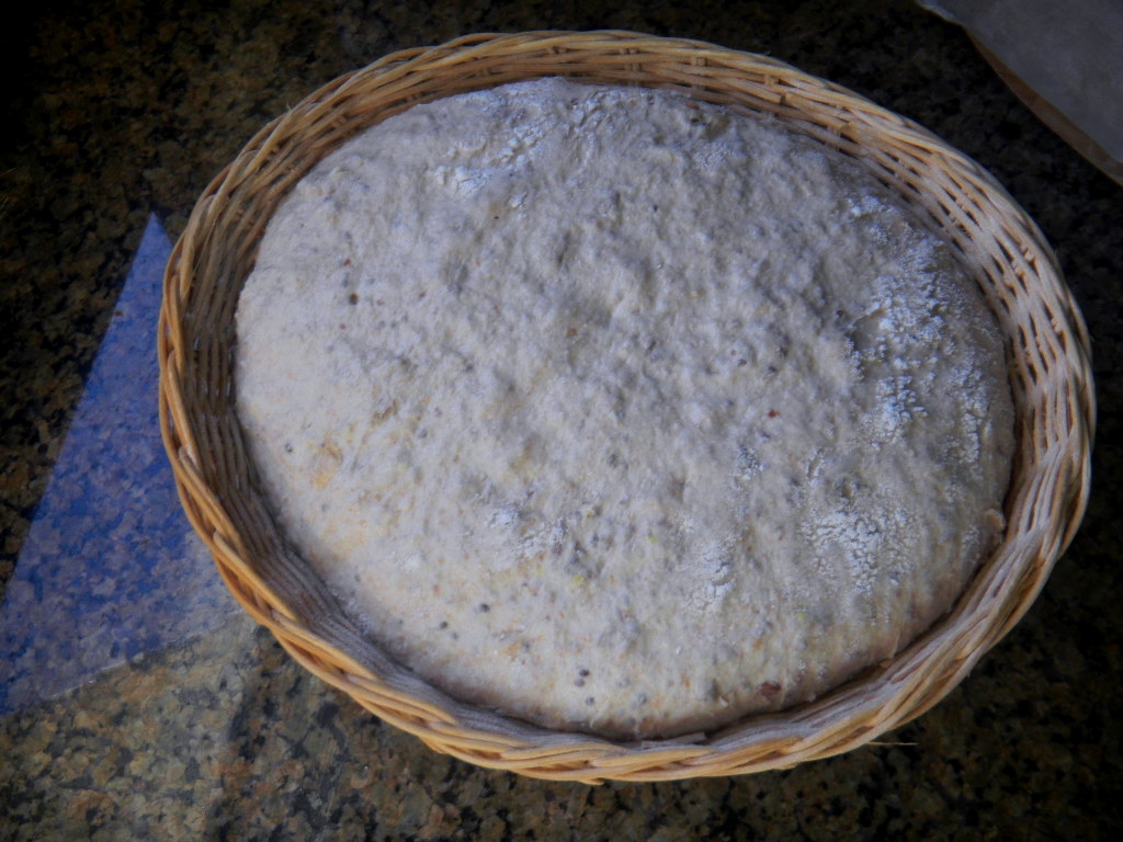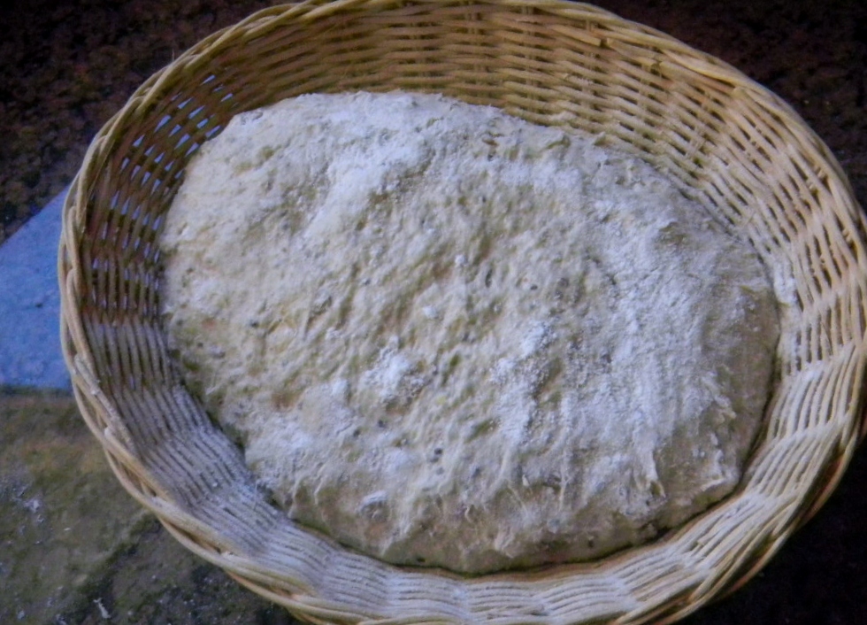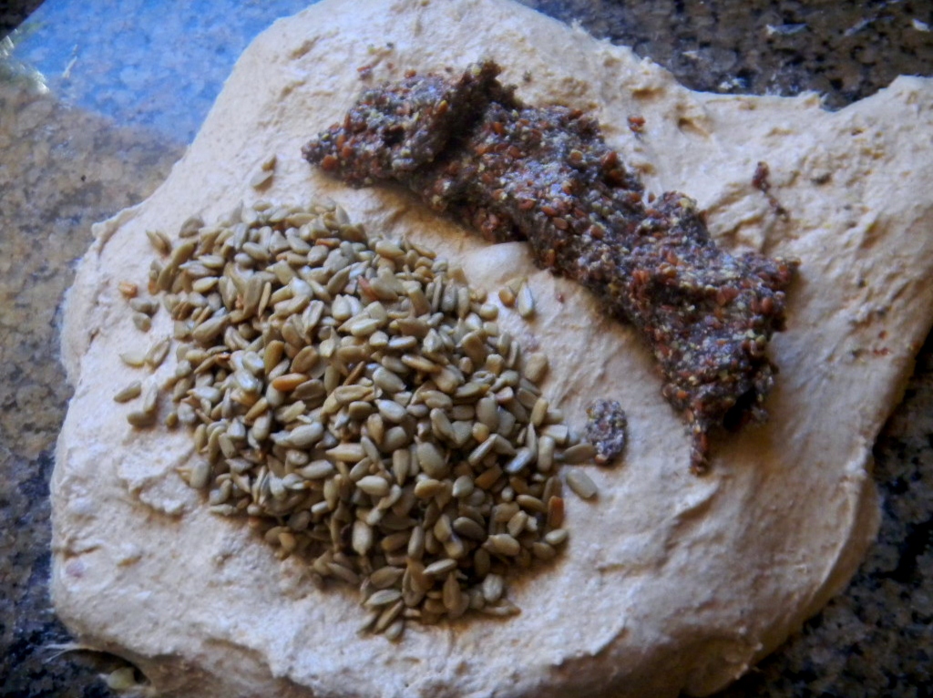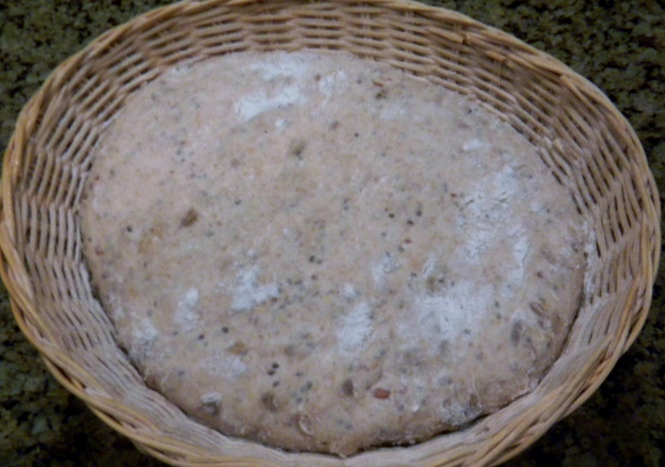 After 3 sets of 30 slap and folds on 30 minute intervals we did 3 sets of 4 slap and folds on 30 minute intervals when the seeds were added in.  The seeds included sunflower as well as chia and chopped flax seeds which were also soaked in 60 g of water so the chia seeds wouldn’t suck all the water out of the dough.  Instead of bulk retarding for 21 hours we decided to do a shaped retard of 18 hours.