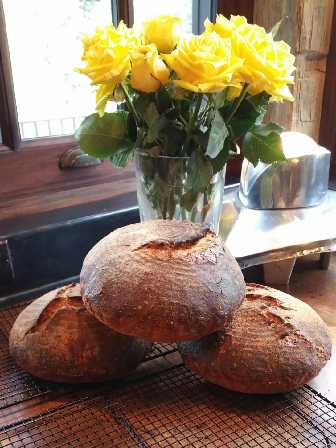 I bake quite close to the Tartine method. As you can see, I bake my loves "through" (crust fully caramelized).