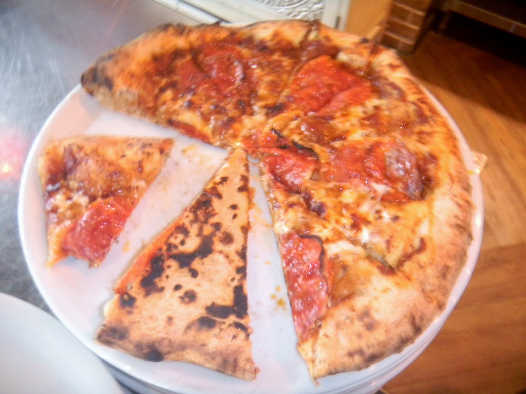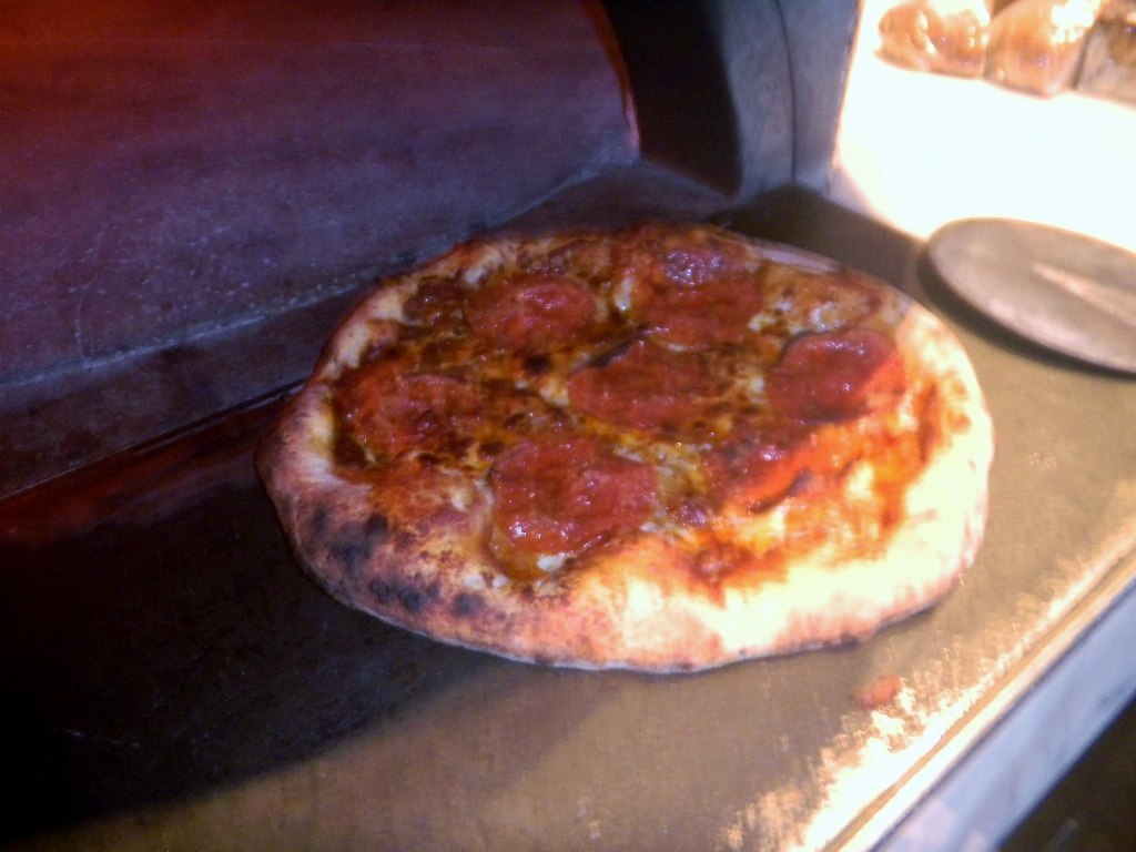 The oven was at 950 F this morning and the kitchen had finished up the stuff they make in the oven early in the day before the restaurant opens…. like peppers and onions etc.  I knew the dough I brought had to be as good as I can make so I wouldn’t look like a total doofus – but I didn‘t have time to sprout any grains having only 1 1/2 days to make the dough from Saturday night.