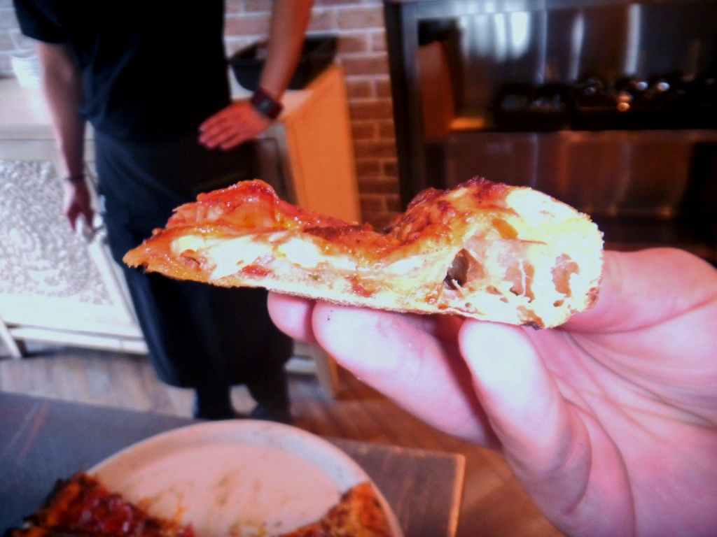 Super airy crust and very crisp. No folding possible or necessary - Yea!