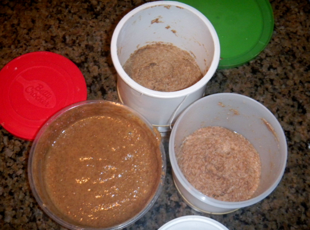 Rye levain top, sprouted levain right and scald left - before they were all mixed together for levain build 4.