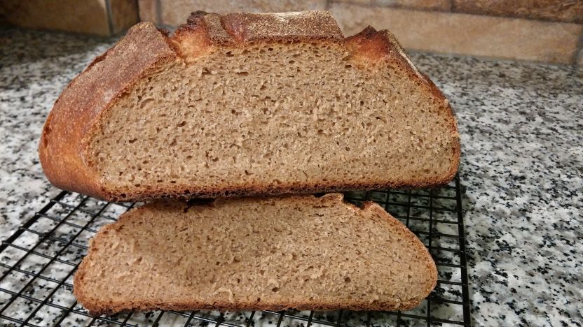 I used about 400 grams of whole wheat flour and 300 grams of rye flour which I sifted after milling grains at home.