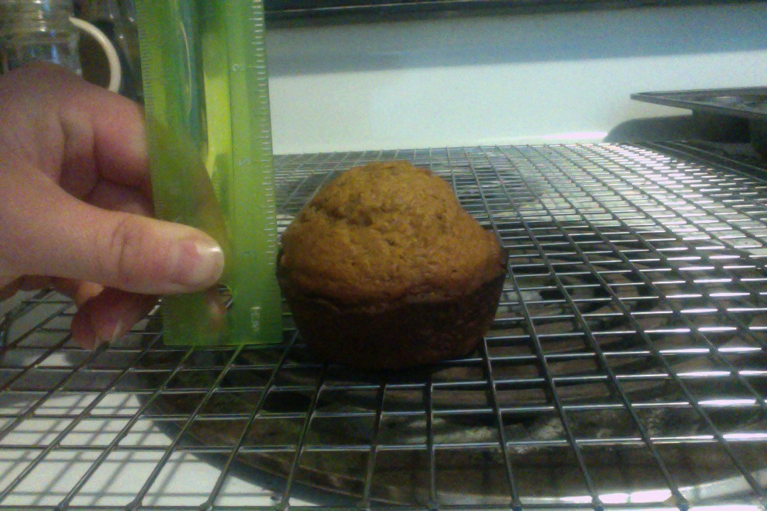 The picture I guess doesn't really provide a reference size. The muffin top has risen but the bottom remains short. Commercial muffins are tall while mine are only a total of 2 inches tall!
