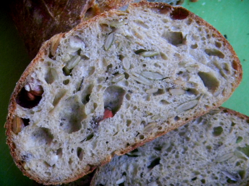Sprouted Kamut and Wheat Sourdough with Filberts and Pepitas