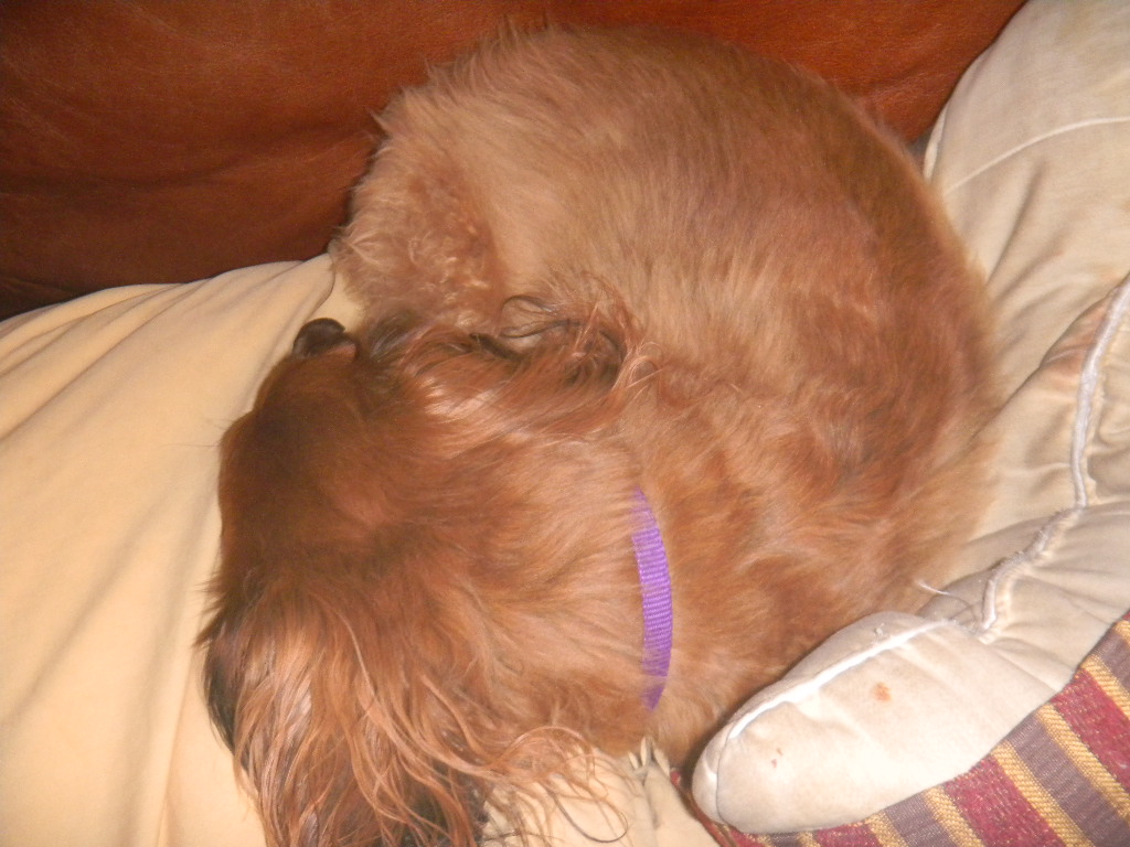 Enjoy the Thanksgiving baking where ever you are residing this time of year and get those apprentices up and put them to work!  Her is Lucy hard at work on her pillow on the sofa at 8 AM after a long night's sleep:-)