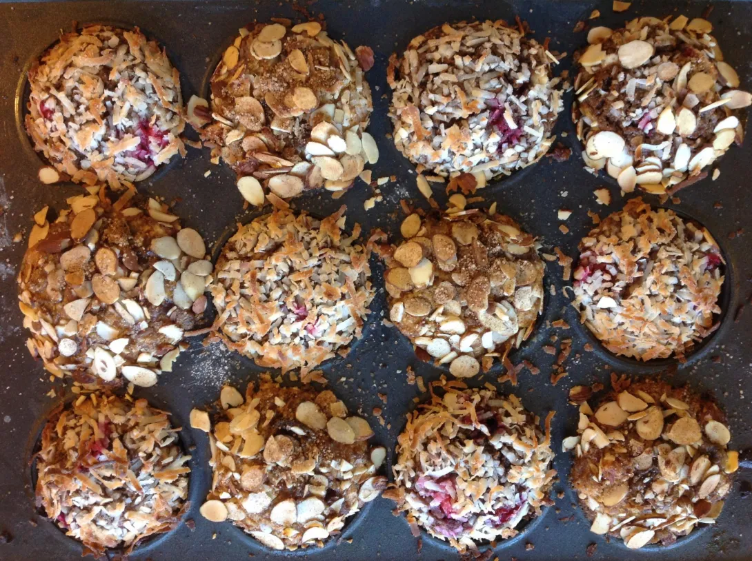 Sweet potato recipies generally call for them to be roasted and pureed first but I didn't have enough time so just grated them real fine and threw in some juice concentrates to give the batter the right consistency and flavor punch. Seems to have worked: All gone. :)
