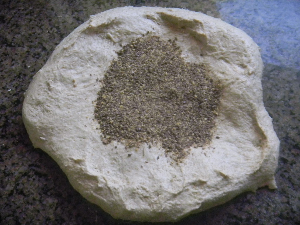 Once the levain hit the mix, we did 3 sets of slap and folds of 30 slaps and 3 sets of 10 slaps al on 20 minute intervals. The cracked flax went in at the beginning of the first 10 slap set and were through incorporated by the end of the third. One the gluten development was done we placed the dough in an oiled bowl, covered it with plastic and put it in the fridge for an 18 hour retard in the fridge.