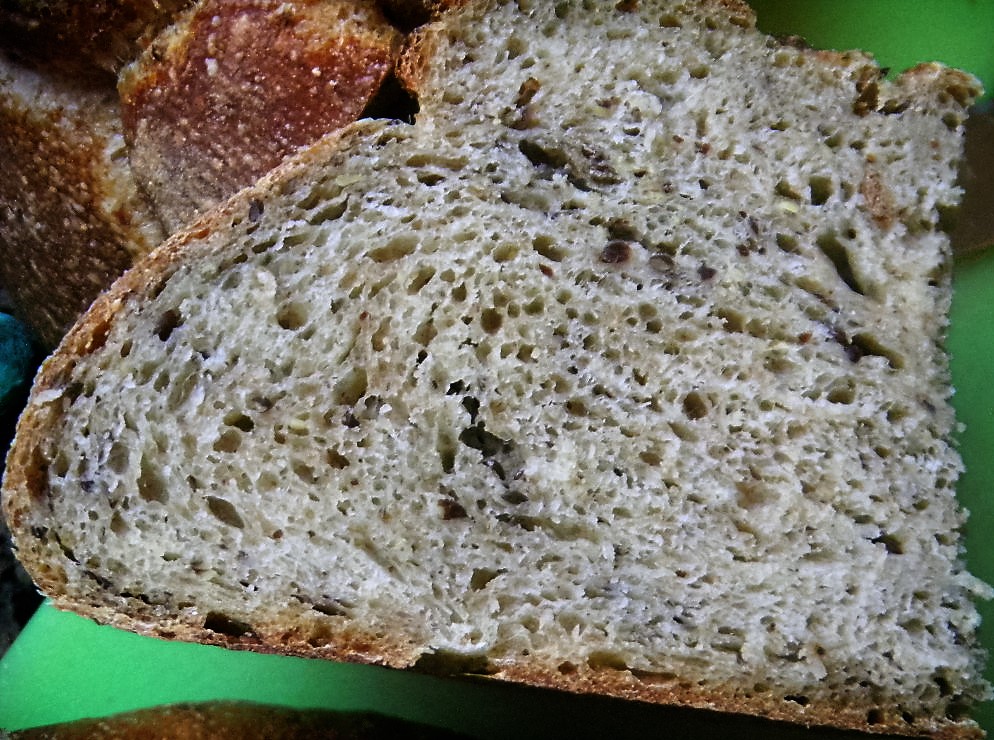 Breads similar to this one make up our ‘sort of standard’ everyday sandwich bread when we aren’t eating some other kind. Flax seeds have all kinds of health benefits but they are usually not accessible to the human body because their shell is so hard and fibrous. Cracking them makes this problem moot.