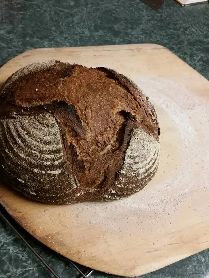 I also feel like this was a little heavy.  Our furnace went on Saturday so when I baked off on Sunday I don't think this really got the proofing it needed (basically, I baked to keep the house warm)