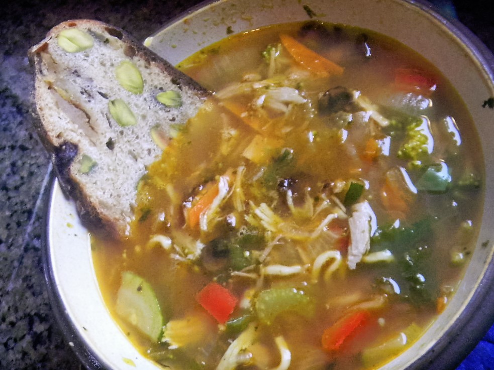 Last week's Witch Yeast, Fig and Pistachio bread with a nice smoked pork. chili spiced, noodle soup.