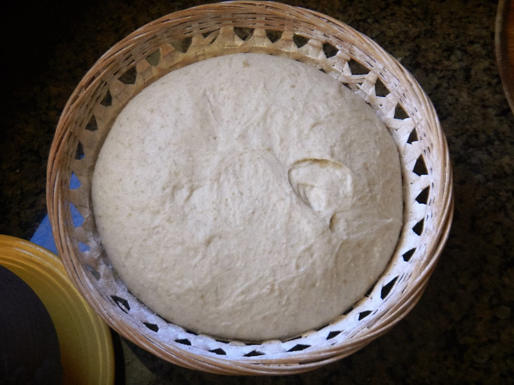 Once shaped we put it in a rice floured basket and then bagged it for a 20 hour cold proof. We took it out of the fridge the next day and let it warm up on the counter for 2 hours hoping it would finish proofing since it didn’t do much in the fridge. These young starters tend to be weak so you have to be patient or just love potatoes more than you do the average, aluminum pooping, bread baking apprentice!